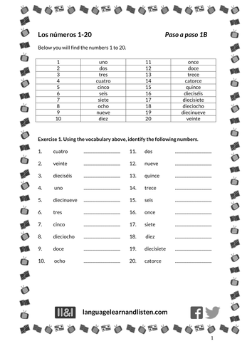Counting Spanish Numbers 1 20 List Sentences And Practice