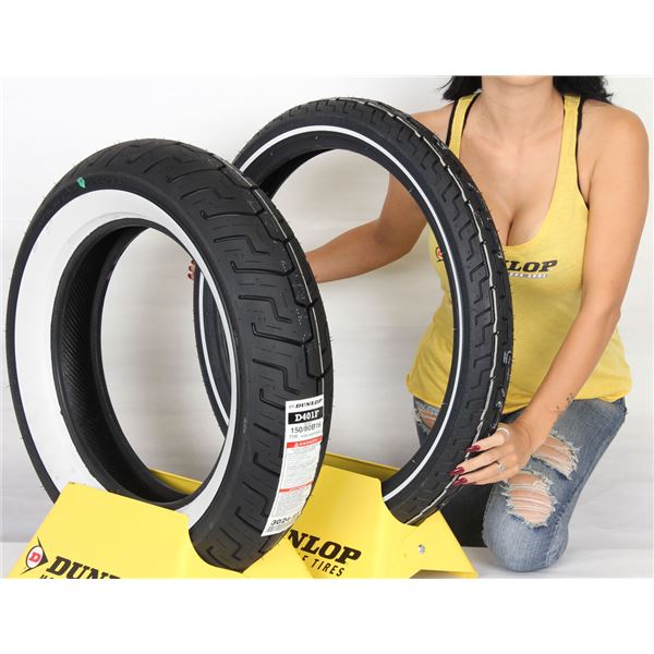 New Dunlop 100 90 19 150 80 16 D401 White Wall Tires Harley