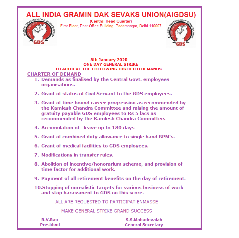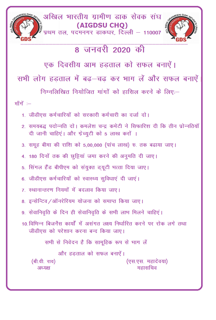All Are Requested To Make 8th January 2020 One Day General Strike