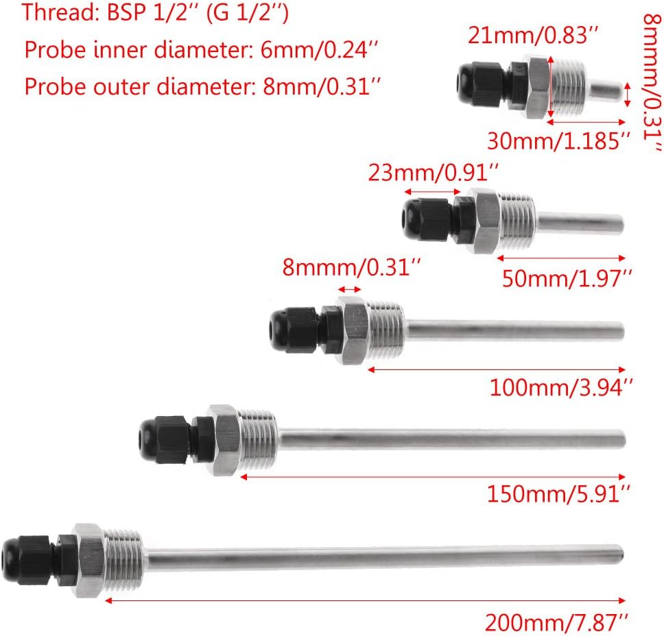 Bilinli 30 200mm Thermowell Stainless Steel 304 1 2 Bsp G Thread For Temperature Sensor Opa Opticad Com